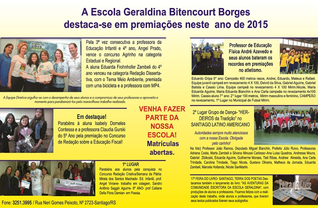 Geral InícioGeral O ano da escola Geraldina – Santiago Publicado em 30/12/2015 POR NP Expresso FacebookTwitterWhatsAppLinkedinTelegram DEIXE UMA RESPOSTA Cancelar resposta Comentário: Por favor digite seu comentário! Nome:* Por favor, digite seu nome aqui E-mail:* Você digitou um endereço de e-mail incorreto! Por favor, digite seu endereço de e-mail aqui Site: Salve meu nome, e-mail e site neste navegador para a próxima vez que eu comentar. Siga o NP Expresso 184.758 132,618FãsCurtir 73,451SeguidoresSeguir Notícias Recentes Geral Moraes sofre pressão para mandar Bolsonaro para casa Brasília - DF - O ministro Alexandre de Moraes está sentindo um aperto que... 20/03/2026 Santiago Leilão de veículos e peças em Santiago Santiago, RS - A Jornada Peças e Suprimentos irá realizar um leilão no dia... 20/03/2026 Geral Transferência de banqueiro assusta líderes do Centrão Brasília - DF - Lideranças do Centrão ficaram preocupadas com a transferência do banqueiro... 20/03/2026 Nacional Esquema de corrupção no Exército termina com prisões no RJ Rio de Janeiro - Um coronel e um empresário foram presos depois de condenação... 20/03/2026 Leia Também Geral Moraes sofre pressão para mandar Bolsonaro para casa Brasília - DF - O ministro Alexandre de Moraes está sentindo um aperto que... 20/03/2026 Santiago Leilão de veículos e peças em Santiago Santiago, RS - A Jornada Peças e Suprimentos irá realizar um leilão no dia... 20/03/2026 Geral Transferência de banqueiro assusta líderes do Centrão Brasília - DF - Lideranças do Centrão ficaram preocupadas com a transferência do banqueiro... 20/03/2026 VER TODAS AS NOTÍCIAS