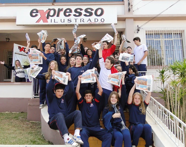 Duas turmas da 8ª série do Colégio Medianeira visitaram o jornal Expresso, pois estão trabalhando para fazer um jornal da escola e vieram conhecer o jornal que eles tanto admiram. Os alunos e o professor Ronaldo Prestes Gomes foram recebidos pela equipe e ouviram algumas explicações da jornalista Sandra Siqueira.