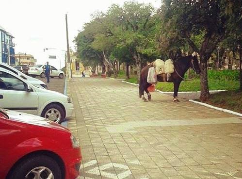 Santiago – Nesta semana um leitor nos mandou uma foto da calçada suja e fizemos um artigo sobre este símbolo do gaúcho: o cavalo. Claro, ninguém quer mudar a tradição, mas ninguém gosta de ver esterco nas calçadas. Não demorou muito e surgiu a foto da tal montaria nas redes sociais e com o seguinte dizer: “Na minha terra é assim que se estaciona”. Podem dizer também que a calçada é para pedestre e quem sujar pode limpar. Regra geral que também vale pros mais gaudérios.