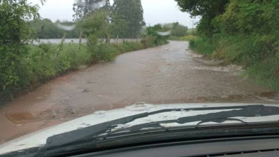 São Vicente – Desde o início da semana a chuva não dá trégua. Até terça já havia chovido mais 200mm, fazendo com que rios e córregos transbordassem. Na Glória, o arroio Divisa encheu tanto que interditou estradas e tapou algumas lavouras que estavam sendo preparadas para o plantio.