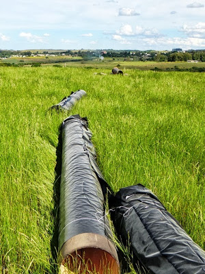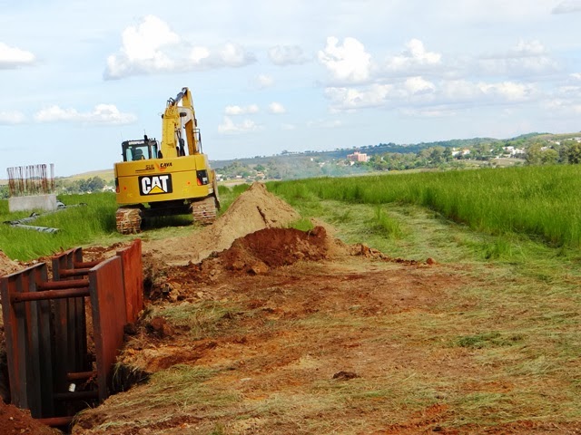 Foram vários anos de espera. Mas finalmente o gerente Rubem Lima e os santiaguenses podem comemorar o início das obras da nova rede adutora (cano principal) que trará água da barragem para a estação de tratamento. O serviço está sendo feito pela Sul Cava, de Santa Maria, que tem oito meses para terminar o serviço. A rede existente, de 350 mm, tem quase 50 anos de existência e seguidamente um cano rompe deixando a cidade sem água. A nova, de 500 mm, é de ferro fundido e muito resistente.