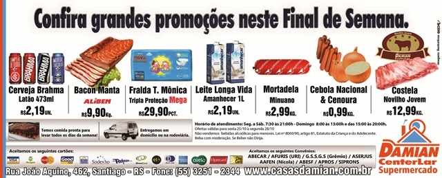 Geral InícioGeral Ofertas Damian para o final de semana Publicado em 30/10/2015 POR NP Expresso FacebookTwitterWhatsAppLinkedinTelegram DEIXE UMA RESPOSTA Cancelar resposta Comentário: Por favor digite seu comentário! Nome:* Por favor, digite seu nome aqui E-mail:* Você digitou um endereço de e-mail incorreto! Por favor, digite seu endereço de e-mail aqui Site: Salve meu nome, e-mail e site neste navegador para a próxima vez que eu comentar. Siga o NP Expresso 184.758 132,325FãsCurtir 72,154SeguidoresSeguir Notícias Recentes Santiago Santiago ganha novo serviço de emergência para saúde bucal Santiago, RS – A secretaria de Saúde implantou o Pronto Atendimento Odontológico no Centro... 09/03/2026 Acidentes Cavalo morr3 após acidente com caminhão na BR-290 Alegrete – RS – (Fronteira Oeste)- Um acidente foi registrado na noite de domingo,... 09/03/2026 Acidentes GIRO DA NOTÍCIA – Carros em choque pegam fogo na BR-287: 4 óbitos Jaguari/Santiago - RS - (Região Central) Um grave acidente na manhã desta segunda-feira, 9,... 09/03/2026 Nacional Trabalhador morre após cair do terceiro andar Itapema, SC - Carlos Roberto da Rocha, 55 anos, morreu na manhã de sábado... 09/03/2026 Leia Também Santiago Santiago ganha novo serviço de emergência para saúde bucal Santiago, RS – A secretaria de Saúde implantou o Pronto Atendimento Odontológico no Centro... 09/03/2026 Acidentes Cavalo morr3 após acidente com caminhão na BR-290 Alegrete – RS – (Fronteira Oeste)- Um acidente foi registrado na noite de domingo,... 09/03/2026 Acidentes GIRO DA NOTÍCIA – Carros em choque pegam fogo na BR-287: 4 óbitos Jaguari/Santiago - RS - (Região Central) Um grave acidente na manhã desta segunda-feira, 9,... 09/03/2026 VER TODAS AS NOTÍCIAS