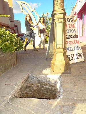 A Prefeitura quer deixar o centro da cidade mais bonito e trabalha na colocação de monumentos e na Rua dos Poetas. Muito bem! Mas veja só: encerrou o expediente e os que trabalhavam perto do shopping Ilha Bella deixaram esse buracão aí, na calçada. E pior: sem sinalizar. Imagine o belo processo que a prefeitura tomaria se alguém vier a se acidentar. Claro que não é culpa do prefeito, nem do secretário de Obras, mas de trabalhadores que foram relapsos ou mal orientados.