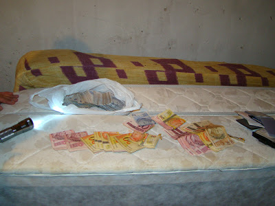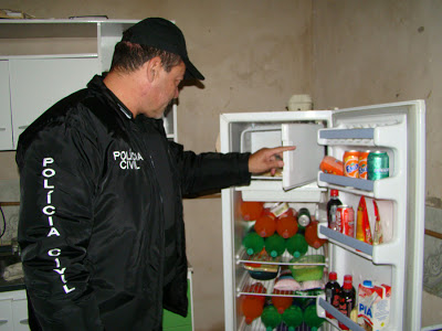 | Policial faz busca minuciosa na casa de um dos suspeitos. |