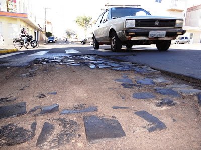 Faz poucos meses que o centro de Santiago foi asfaltado e em algumas ruas as rachaduras já apareceram. Pior foi em dois trechos da Tito (perto do Mercado Central e da CDA), com dois buracos abertos para consertar a rede d’água da Corsan. E nada de colocarem o asfalto de novo.