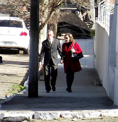 Mas aqui em Santiago, longe disso, o bom é andar a pé, como fazem o advogado Maximiliano Stakowiski e sua esposa. Vejam a foto.