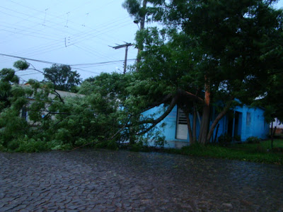 A BR 287 ficou interrompida ontem à noite em vários locais com a queda de árvores, eucaliptos e alguns pínus (pínus? Mas que pena, vai ter gente chorando por eles). Mas a pista ficou limpa em poucas horas graças aos bombeiros e agentes da polícia federal.