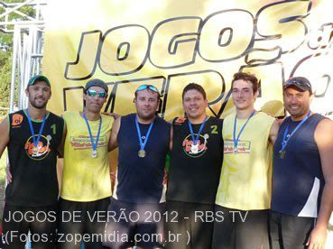 Vencedores vôlei de praia 4×4 equipe Piscina Tênis Clube: Cristiano Pauletti, Anderson Retore, Fábio Pinto, Péterson Retore e Gustavo Faturi.