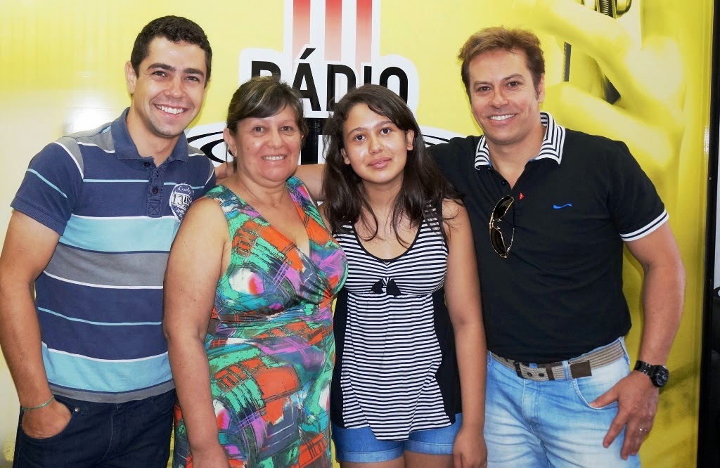 Tânia e sua filha, Gabriele com os comunicadores da Rádio ITU, 1460.
