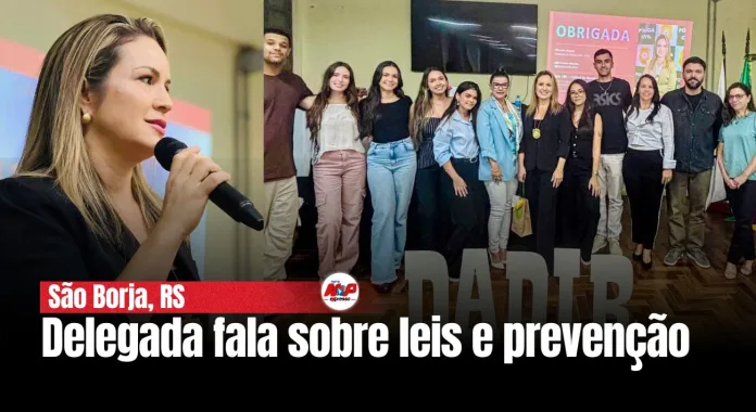São Borja, RS – A delegada Elisandra Mattoso Batista participou como palestrante em um encontro na Unipampa, em São Borja. A atividade foi organizada pelo Diretório Acadêmico de Direito.