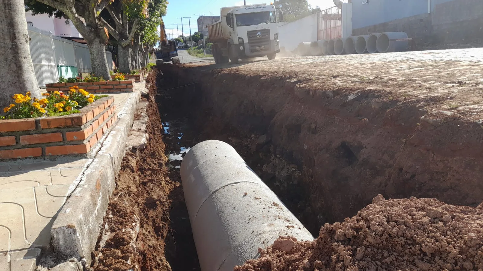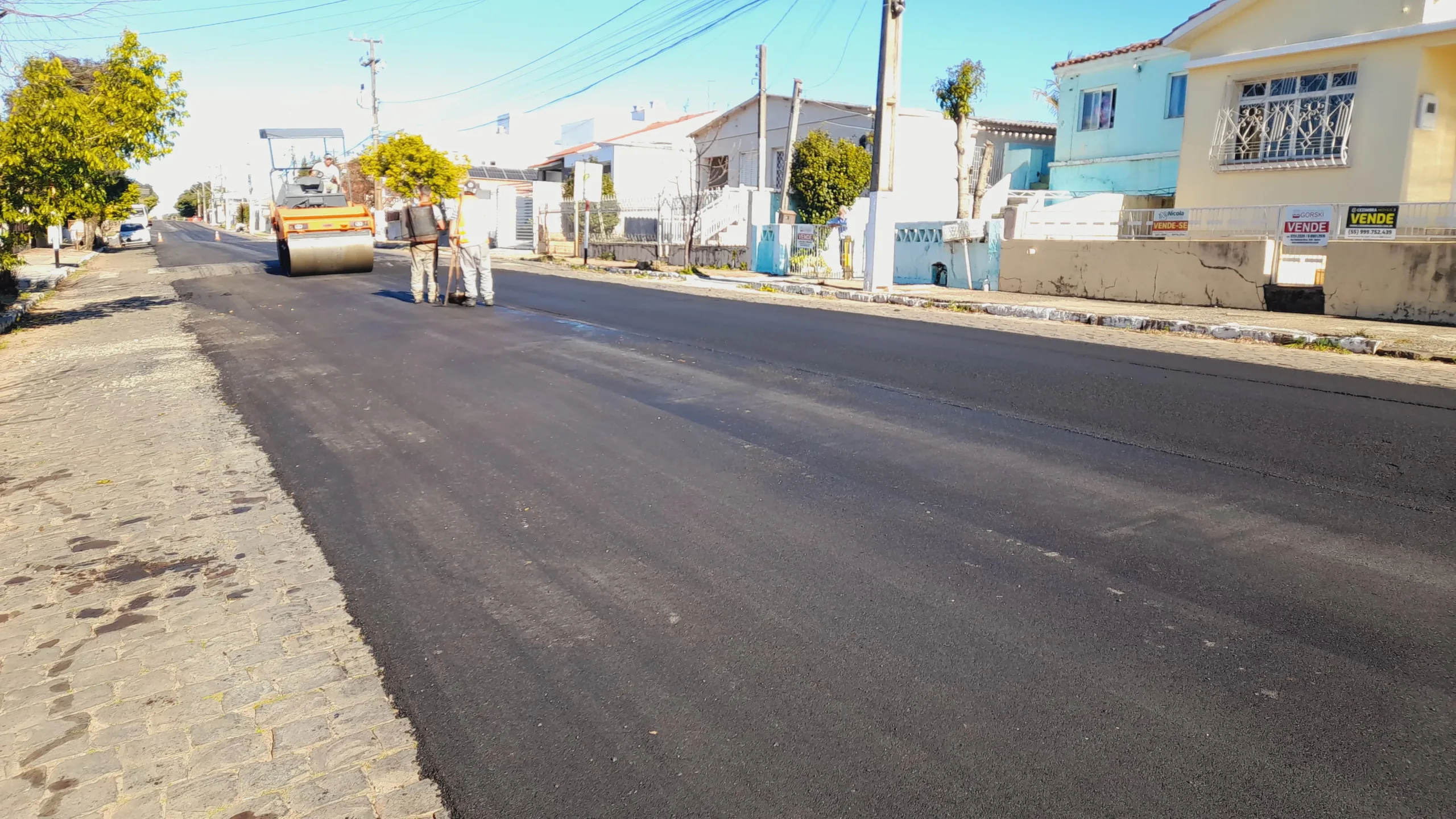 Estão em andamento as ruas Rafael Gomes da Silveira e Primo Zambelli. Em breve entram Hermelina Aquino Nessi, Carreteiro Laudelino Lopes de Medeiros, Milton Cirilo dos Santos e mais 300 metros da Hipólito Garcia. E 2026 pretendemos investir mais forte ainda em calçamento nos bairros.