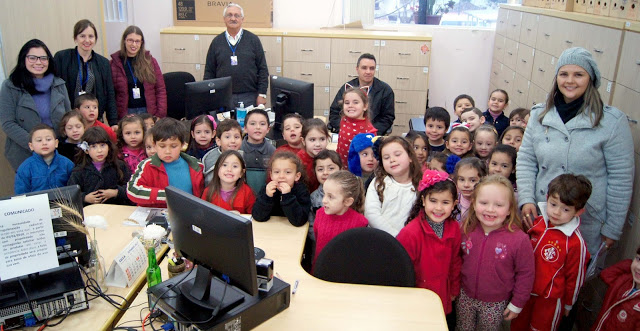 Santiago – Mais de 30 alunos da escola de educação infantil Neuza Manzoni foram levados pelas professoras para visitar a Prefeitura. O objetivo era o de saber sobre o trabalho de educação fiscal que é estimulado pela campanha Ação Premiada. Os pequenos foram recebidos pela equipe do setor de ICMS e ficaram sabendo que pedir nota fiscal na hora da compra é muito importante, ajuda na arrecadação do município e ainda é possível concorrer a prêmios trocando as notas por cautelas.