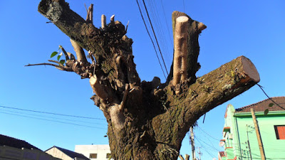 Os vereadores Gildo Fortes, Rafael Nemitiz e Eva Müller fizeram uma denúncia de que as árvores estão sendo mal podadas. Eva falou que estão fazendo uma degola, não uma poda.