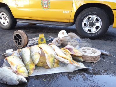 A Policia Rodoviária Estadual pegou há pouco três pescadores que vinham de Manoel Viana com 8 dourados, redes de pesca, espinhel e outros peixes pequenos como grumatãs, que não é permitida a pesca. Neste momento, os pescadores estão na Delegacia prestando depoimento e se for aplicada a multa prevista para esse tipo de crime terão que pagar em torno de 40 mil para não irem pra cadeia.