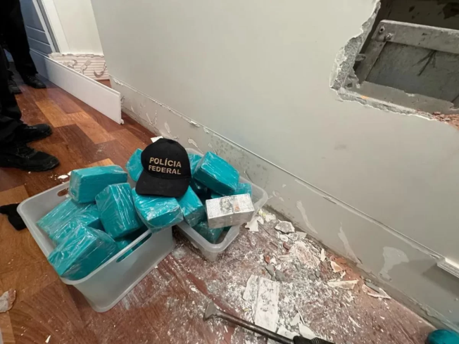 Além do dinheiro escondido na parede, foram encontradas bolsas com mais de R$ 100 mil em espécie. E duas remessas de drogas, totalizando 1.500 kg de cocaína.