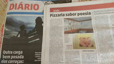 A leitora Joselaine Garcia destaca Santiago nas páginas do jornal Diário de Santa Maria, em atenção à “VERSOS” Pizzaria Temática, voltada à Terra dos Poetas, ligado literatura e gastronomia. “Vocês estão escrevendo uma nova história, pois repaginaram o estabelecimento depois de um ano de planejamento e pesquisa. Portanto, parabéns ao empresário José Eraldo Guarda Garcia. Quando se muda sabendo o porquê, com planejamento, objetivo e, acima de tudo, com seriedade e amor, o sucesso vem na certa!”