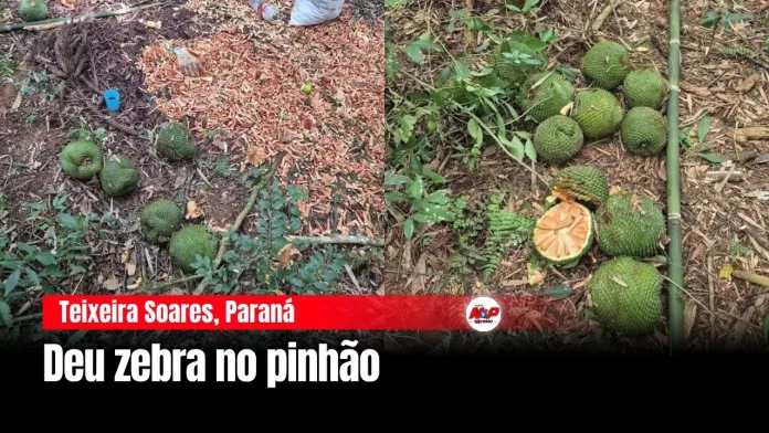 Teixeira Soares, Paraná – Dois sujeitos fugiram após perceber a presença de policiais durante fiscalização em uma área de preservação no município de Teixeira Soares, no Paraná, onde havia extração irregular de pinhão em uma reserva biológica.