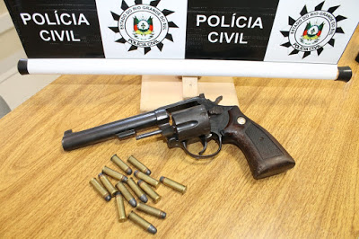 Santiago- A Polícia Civil cumpriu dois mandados nesta sexta, prendendo preventivamente Emerson Reuter (40 anos). Ele estava com o 38 roubado da casa de Hélio Garcia do Nascimento, assassinado no ano passado em Monte Alegre. Emerson caiu por posse de arma e receptação. A polícia também botou as mãos em Marcelo Henrique Ramos Paz (23 anos), vulgo “Mocinha”. Ele é suspeito de vários furtos em residências nos últimos dias. (Fotos: Blog Rafael Nemitz)