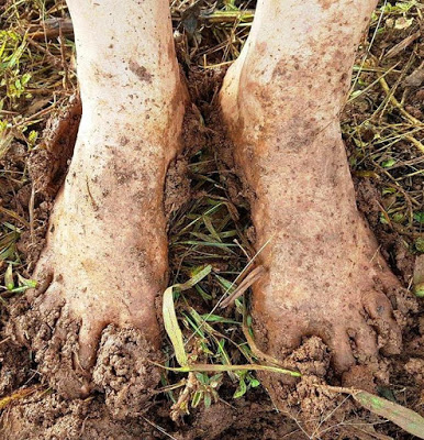 Calma! Santiago ainda é das raras cidades brasileiras que não têm nenhum de seus políticos “enlameados”, pelo menos não até agora. Os pés que você vê aí virados em lama são do famoso deputado bombeiro Bianchini. É que nos fins de semana ele adora ir para sua chácara e reviver os tempos de guri, quando andava descalço trabalhando pelas lavouras. Quando brincam com ele, sempre responde que essa é a única lama em que pode meter os