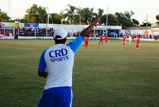 O engraçado é que tu olhava da arquibancada e via as costas do treinador Capitão, a do preparador físico, a do Carlos Miguel. Na camiseta, o letreiro bem grande CRD. Tudo bem que o time todo não era daqui mas poderia ter escrito “Cruzeiro” na camiseta para pelo menos facilitar pra torcida;