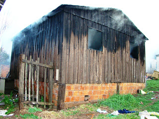 Agora há pouco se ouviu a notícia de que havia um incêndio em Santiago, e bem pertinho dos bombeiros, rua José Calegaro A casa estava vazia e ninguém se feriu, entretanto, nada sobrou. Há suspeitas de que o incêndio tenha sido criminoso. (Ninguém sabe onde está o casal que alugava o imóvel).