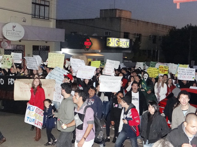 Santiago não ficou pra trás e meteu bronca em dois protestos, um na quinta à noite e outro no sábado à tarde, como na maioria das cidades brasileiras. O povo se divide em opiniões importantes e as que não dizem nada ou dizem o que não adianta dizer. Mas enfim, tudo é válido desde que não haja baderna, beberagem nem ofensas a ninguém.
