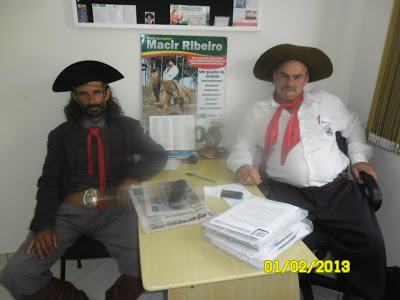 Este gadelhudo da foto com o vereador Macir é o Ernesto Belmonte Dias, o Mano Dias, cantor galponeiro com três discos gravados. (Diz o seu Macir).