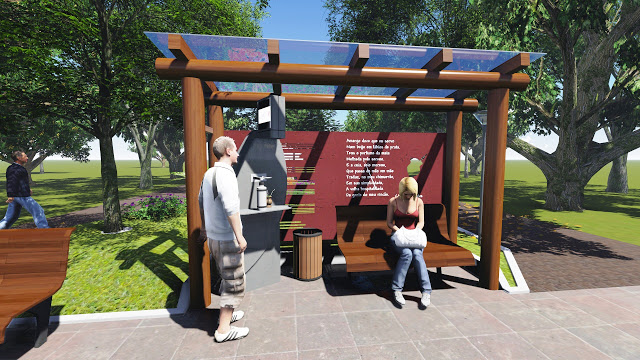 Santiago – Uma estrutura em madeira na praça Moisés Viana desperta a curiosidade. O que será feito ali? A arquiteta Ana Paula Bertani esclarece: será um quiosque para distribuição de água quente, como o que já tem na Praça do Ginasião. Será colocada uma cobertura em policarbonato e, no fundo, uma chapa de aço com uma poesia de Aureliano Figueiredo Pinto. Dentro, banco e lixeira ao lado do equipamento com água quente. Será um estímulo pra que todos frequentem mais a praça.