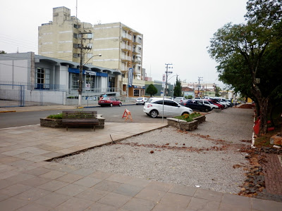 Parte do antigo calçamento da praça central de Santiago foi retirado pela Prefeitura. É que nos próximos dias, será feito um novo passeio público, mantendo o mesmo padrão da Rua dos Poetas, além de colocar novos bancos e floreiras. Outra novidade será a criação de um monumento em homenagem a Moisés Viana, falecido juiz, que dá nome à praça.