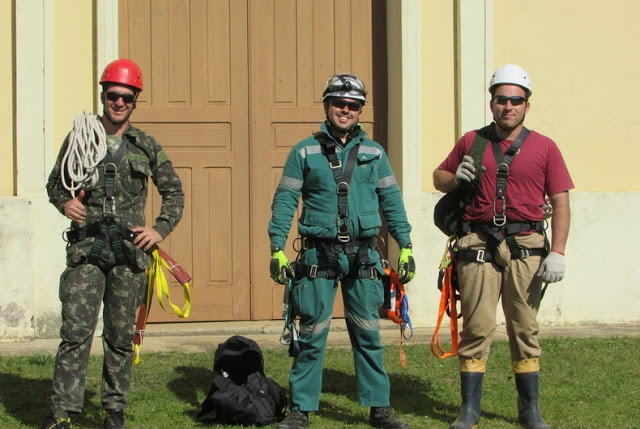 Praticantes de rapel fazem limpeza em igreja