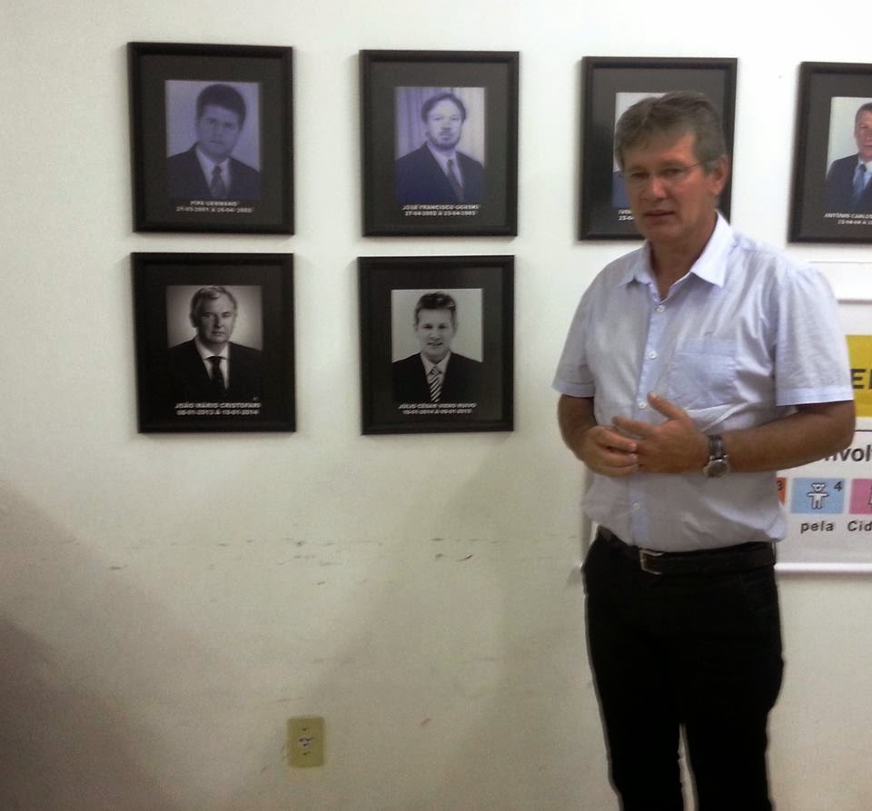 Na manhã desta terça, o prefeito Ruivo participou de uma reunião na AM Centro em Santa Maria e experimentou a sensação de se tornar um “ex”. É que ele inaugurou sua foto na galeria de ex-presidentes da entidade, que presidiu durante um ano, no período de 2014-2015. Ruivo comentou, no entanto, que ficou feliz da coincidência de sua foto ter ficado abaixo de uma do falecido prefeito Chicão, seu grande amigo, que presidiu a AM Centro de 2002 a 2003.