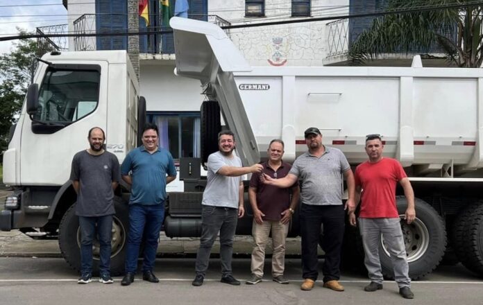 O município recebeu no início da semana um caminhão caçamba para a secretaria de Obras. O veículo custou 720 mil, sendo que metade do valor da compra foi de recursos obtidos com os leilões de implementos e veículos sucateados.