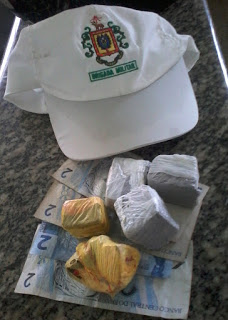 fugiu e entrou num pátio na rua Eli Brandão, jogando 5 tijolos de maconha