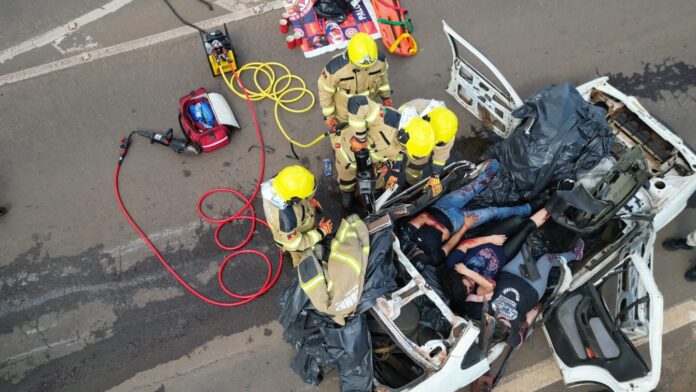 O exercício simulou duas situações críticas: um incêndio em uma edificação comercial e um acidente de ônibus com múltiplas vítimas. Essas simulações permitiram que as equipes de resgate atuassem em condições próximas à realidade, testando sua capacidade de resposta rápida e coordenada.