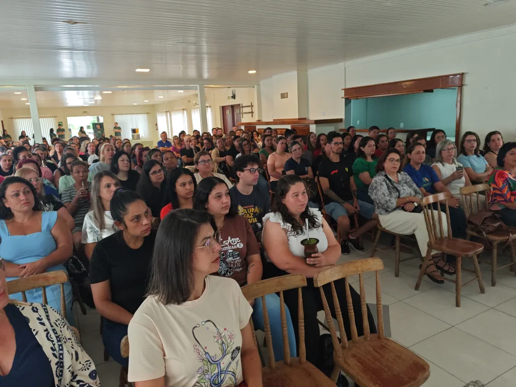 Durante o encontro, o professor doutor João Lemes destacou que a tecnologia é ferramenta, mas não substitui o vínculo humano. Falou da importância do professor no cuidado com os alunos e no enfrentamento da violência dentro e fora da escola. A palestra teve momentos de reflexão, risadas e interação.