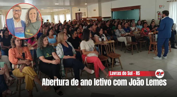 Lavras do Sul – RS – (Região da Campanha) – João Lemes esteve em Lavras do Sul para abrir o ano letivo com a palestra “A Missão do Professor para o Século XXI”.