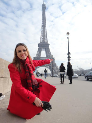 | Lígia, toda feliz, nas proximidades da torre Eiffel. |
