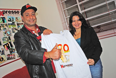 O vereador Sandro Palma, atual presidente da Câmara de Santiago, garantiu sua camiseta e boné comemorativos dos 20 anos do jornal Expresso. Os leitores podem ganhar esses brindes personalizados, pagando ou renovando sua assinatura do jornal por seis meses (camiseta) ou três meses (boné), diretamente na redação do Expresso ou pedindo a visita de um representante pelo fone 3251-1717.