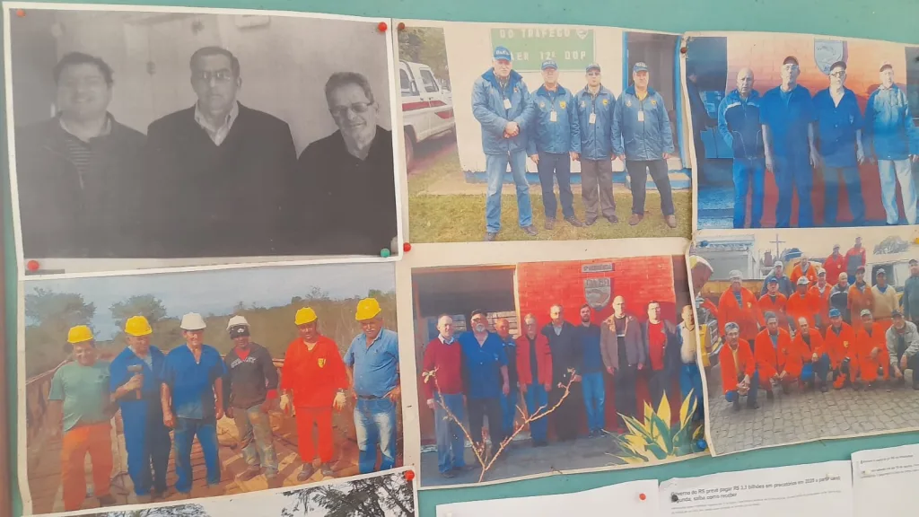 A atual equipe conta com 13 servidores, muitos dos quais com décadas de dedicação, como demonstra o registro abaixo que destaca a longevidade no serviço público: Cacaio (mais de 40 anos no DAER), Antônio “Leco” (45 anos), João Batista Delalibera (41 anos) e Alcides Chaves, aposentado com 38 anos de serviços.