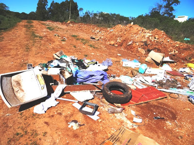 Moradores do bairro Zamperetti estão indignados com quem fez uma sujeirama dessas no final da rua Benjamin Constant. Descarregaram pneus, um tanquinho e outras porcarias, como se ali fosse um lixão. Mas o cara pode ser dar mal. Vizinhos resolveram investigar e encontraram carnês e notas fiscais com o nome de uma pessoa. Então, achá-lo não vai ser difícil.