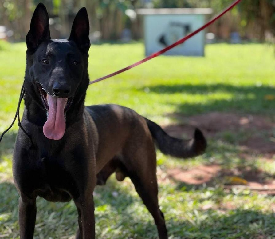 Tobias é um pastor-belga-malinois de dois anos que nasceu em Goiânia e, desde filhote, demonstra aptidão para detecção em operações policiais.