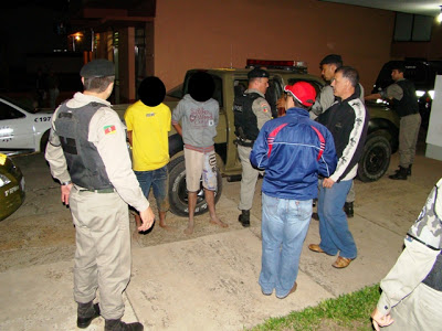 Ontem à tardinha, três marginais assaltaram a chácara do delegado Brum. E a polícia civil e Brigada foram ágeis em colocar a mão em dois deles, menores de idade. E foi aí que começou a decepção de quem fez todo o serviço e se arriscou a tomar um tiro de um vagabundo (um deles chegou a dar um tiro nos brigadianos). Ficaram horas e horas na delegacia fazendo o flagrante para logo depois verem os dois saírem dando risada, liberados para roubarem livrementes a hora que quiserem, pois conforme informação da Delegacia, hoje pela manhã, a Justiça não acatou o pedido de recolhimento à Fase.