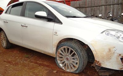 A Brigada acaba de botar as mãos num jovem que roubou um carro zero bala (bravo) de dentro do depósito da Fiat (trevo São Borja) e depois de rodar bastante com outra placa, foi pego perto da Bonato. Ao disparar da polícia, bateu o carro num barranco perto do 2º Lajeado, danificando-o.