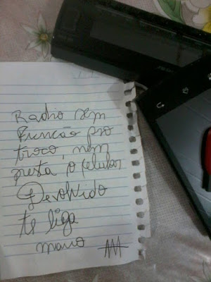 São Sepé – Um homem roubou um celular, um pendrive e uma frente de rádio do carro de uma família, que tinha deixado o veículo em frente de casa. No entanto, o mais curioso foi o fato do ladrão voltar  e devolver os objetos com um bilhete dizendo que eles não valiam para o brique.