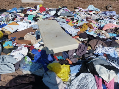 Este monte de roupas foi descartado ao ar livre no nosso lixão municipal. E a denúncia diz ainda que estavam jogando uma carga de terra por cima. Ainda bem que o nosso ex-vereador Diniz Cogo segue atento e já encaminhou fotos à Promotoria pedindo providências. Ele acredita que tenha mais de 500 peças em bom estado jogadas lá.