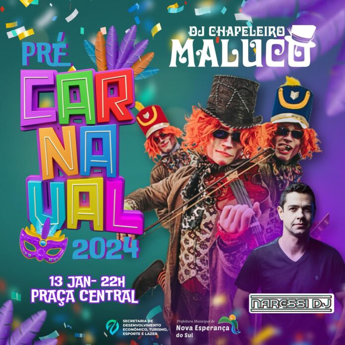 A Prefeitura de Nova Esperança convida a comunidade e pessoas de toda a região para o evento Sabadeira/Pré Carnaval 2024, que acontecerá neste sábado (13), a partir das 22h na Praça Central.