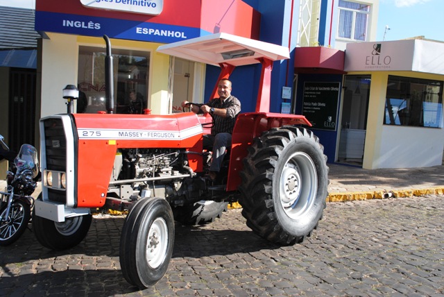 Na sexta, o ex-vereador Sandro Palma foi ao Expresso comprar alguns exemplares. Vejam como ele foi. Assim, de trator. Talvez a máquina fosse nova e ele desejava mostrá-la.