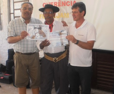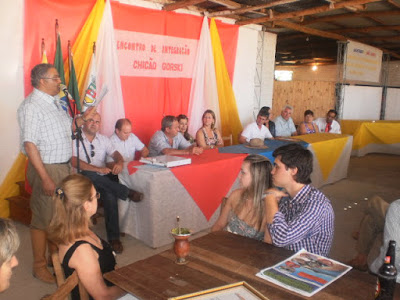 O advogado Valdir Amaral Pinto contou parte da história da fundação dos municípios e em seguida foram entregues os certificados aos participantes da cavalgada de integração, do grupo Nascentes do Rio Itu, de Santiago e do grupo Honorival Witt Paz, de São Francisco de Assis.