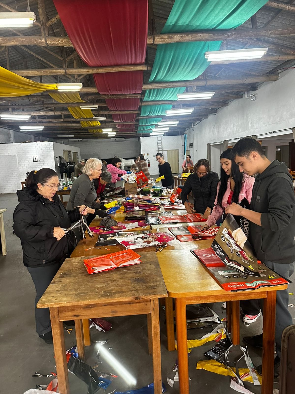 Na tarde da última segunda (13/5) iniciou-se um mutirão no CTG Coxilha de Ronda para confecção de sacolas recicláveis para auxiliar as vítimas das enchentes em Canoas e região. As sacolas, chamadas de Eco Bags, serão usadas para as pessoas guardarem seus pertences e também para a coleta de ração animal.