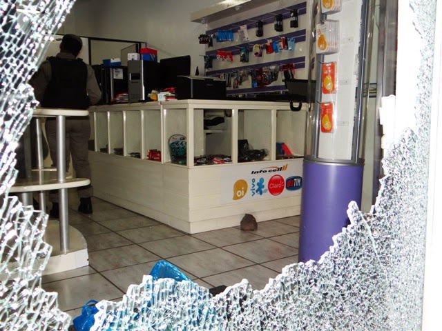 Cedo da noite de terça os ladrões agiram no centro de Santiago, fazendo um limpa na loja Infocell, ao lado da lavanderia Ponche Verde – rua Marechal Deodoro. A vitrine foi quebrada com uma pedra, de onde levaram tudo o que tinha nela: celulares, tablets, laptops, capas e alguns micros. Os larápios agiram rapidamente pra evitar o flagrante, porém deixaram uma bicicleta frente à loja, o que pode ajudar a identificá-los. A polícia já está fazendo buscas, alertando que a pessoa que comprar qualquer coisa roubada será também autuada por crime de receptação.